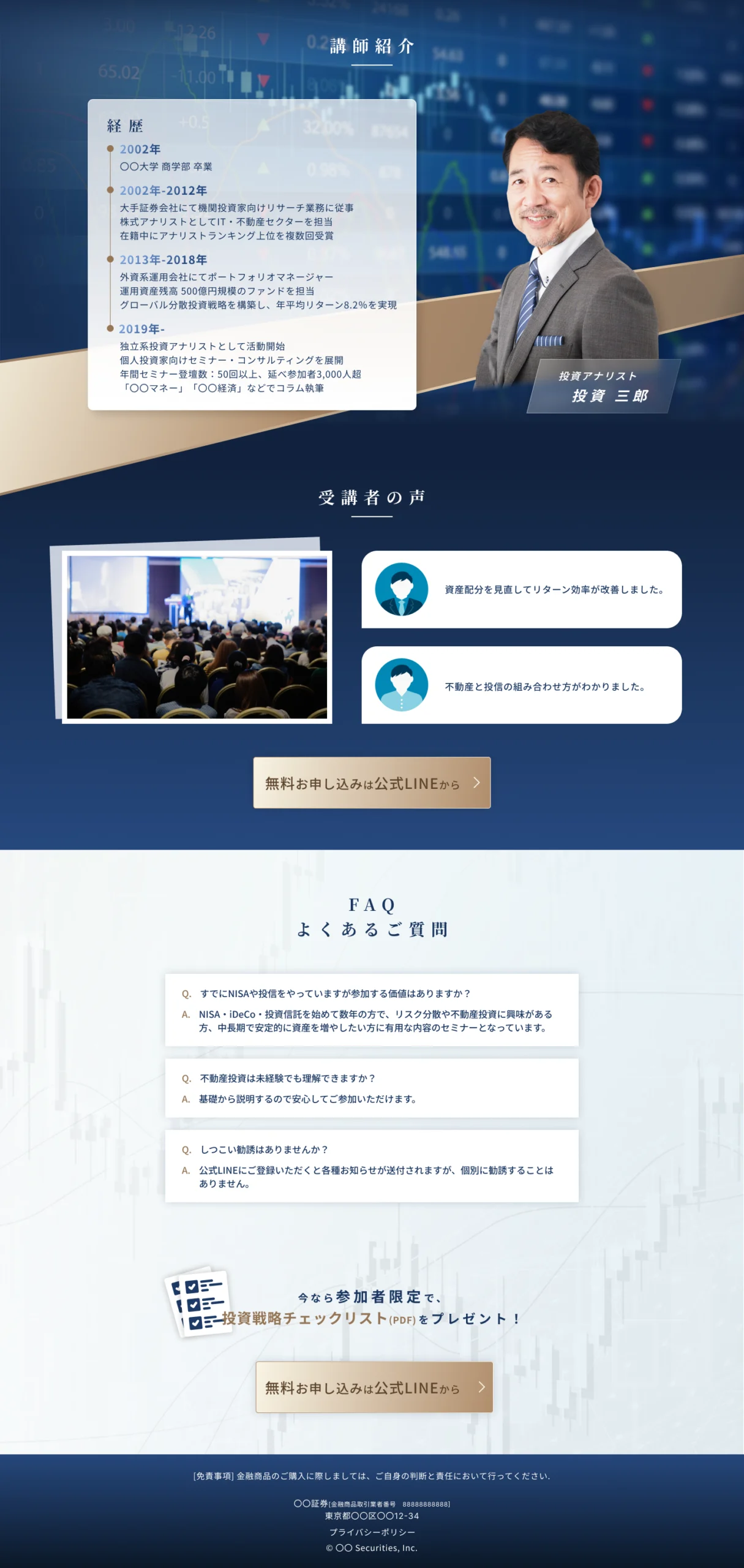 【架空案件】投資系セミナーのLPを作成しました。
